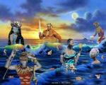 Yemallá.- Deidad maternal. Representa la Madre Naturaleza. Dueña de todas las aguas oceánicas, que junto a Olokum cuidan de las riquezas de las profundidades marinas. Representa el elemento agua y su color es el azúl en todas sus modalidades.